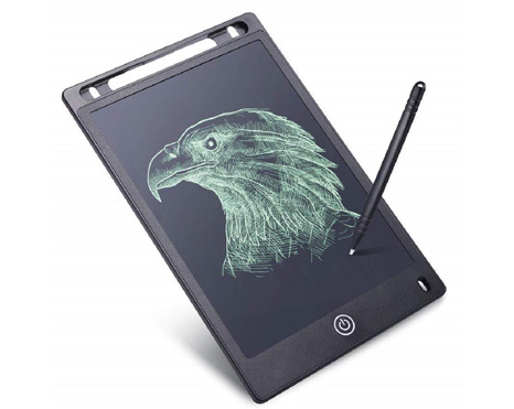 8.5 Inch LCD Writing Tablet Drawing Board Erase Slate Pad Electronic Blackboard School Office Home Paperless Stationery. Ultra-thin One Button Erase. Best Learning Tool For Kids - Save 100000 Papers. With replaceable coin-cell battery inside, working time is nearly 2 years and can write more than 50,000 times. Environment friendly, Eye-friendly and saving paper.